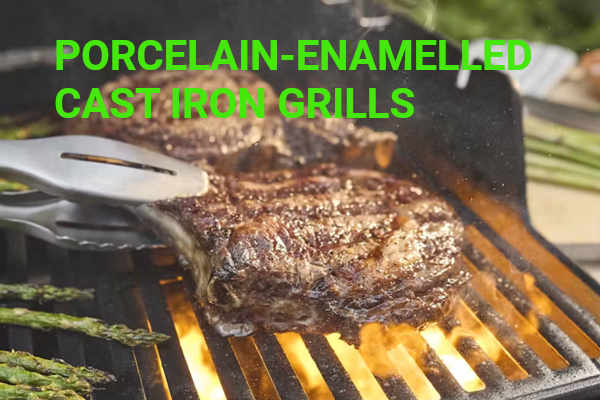 Heavy-duty porcelain-enamelled, cast-iron cooking grills ensure even, consistent heat while the included half-hotplate adds extra cooking versatility.